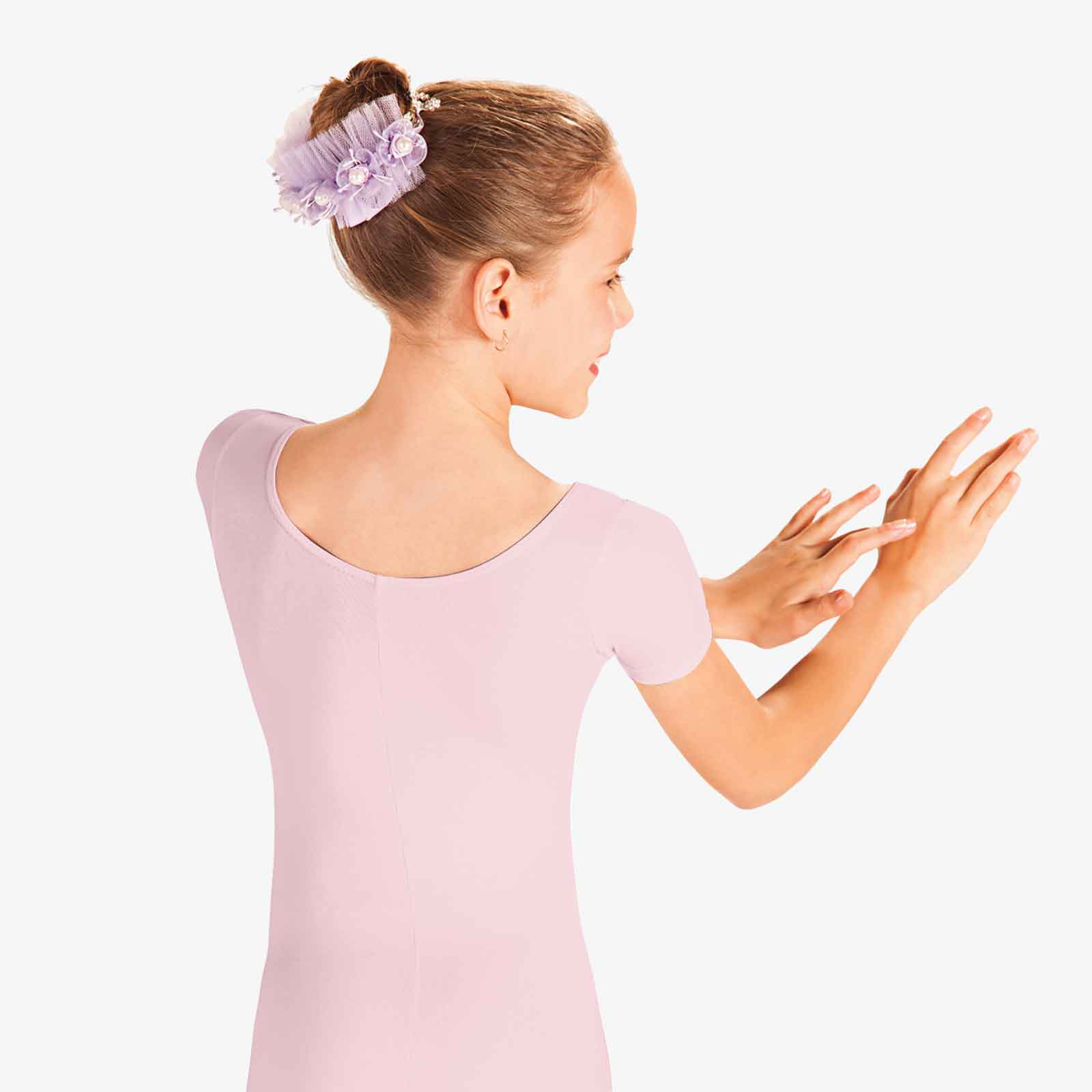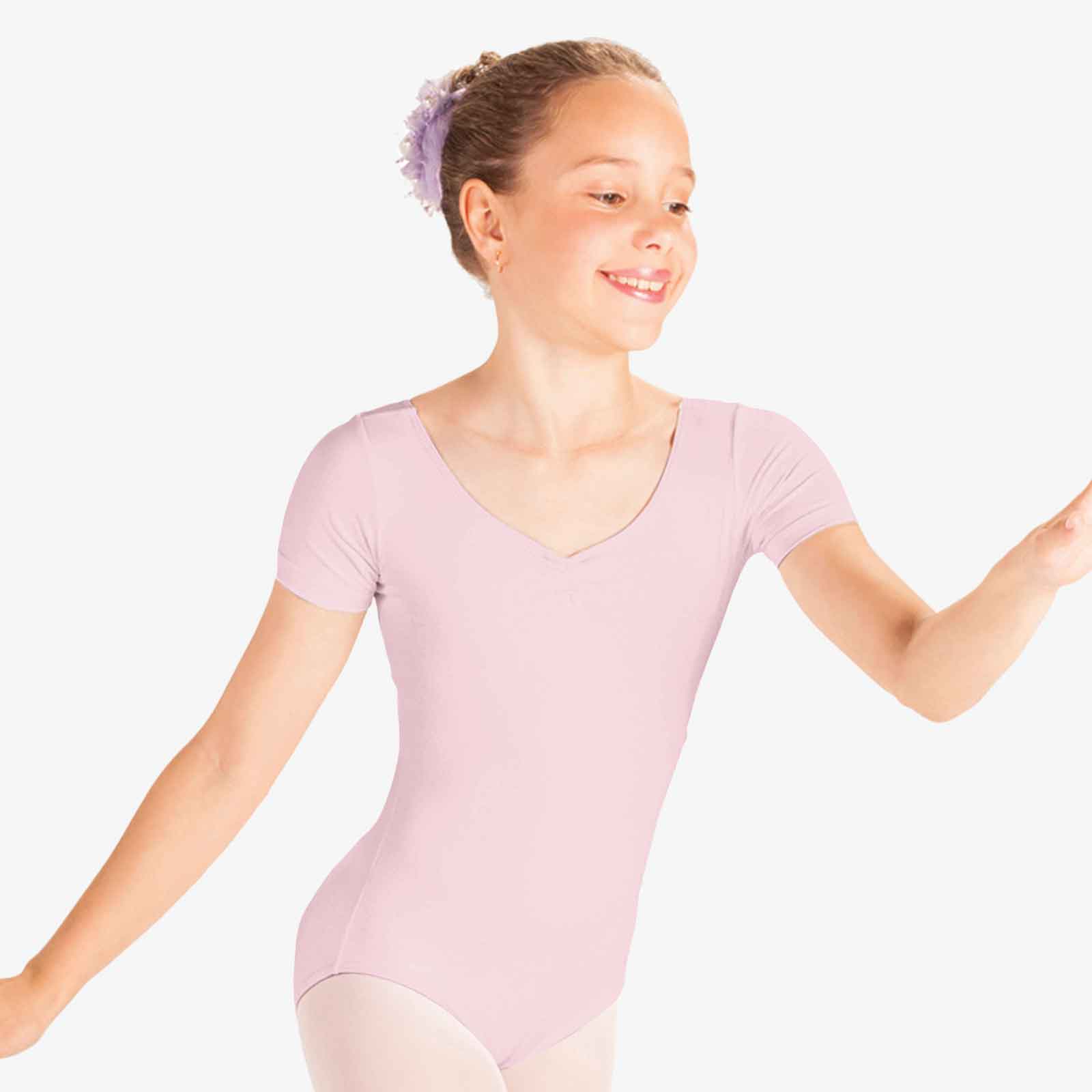 Master your technique in the Khloe (D6258), a versatile short sleeve leotard that blends traditional style with customizable modern detail. Its soft cotton feel and adjustable front pinch make it the indispensable everyday essential for every young dancer's studio wardrobe.