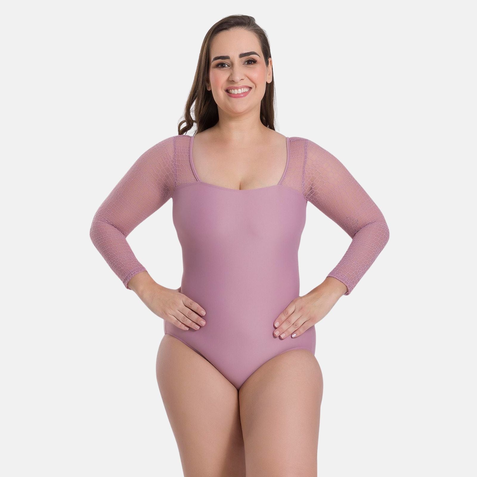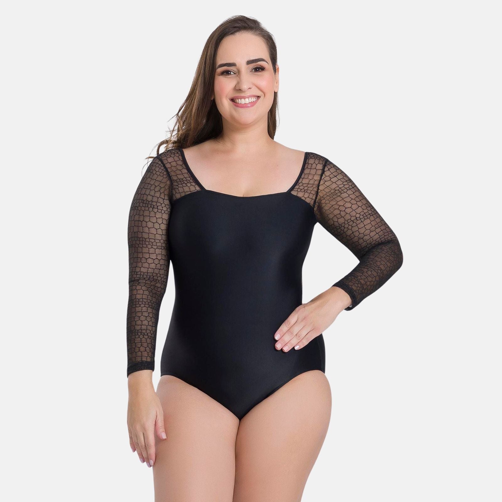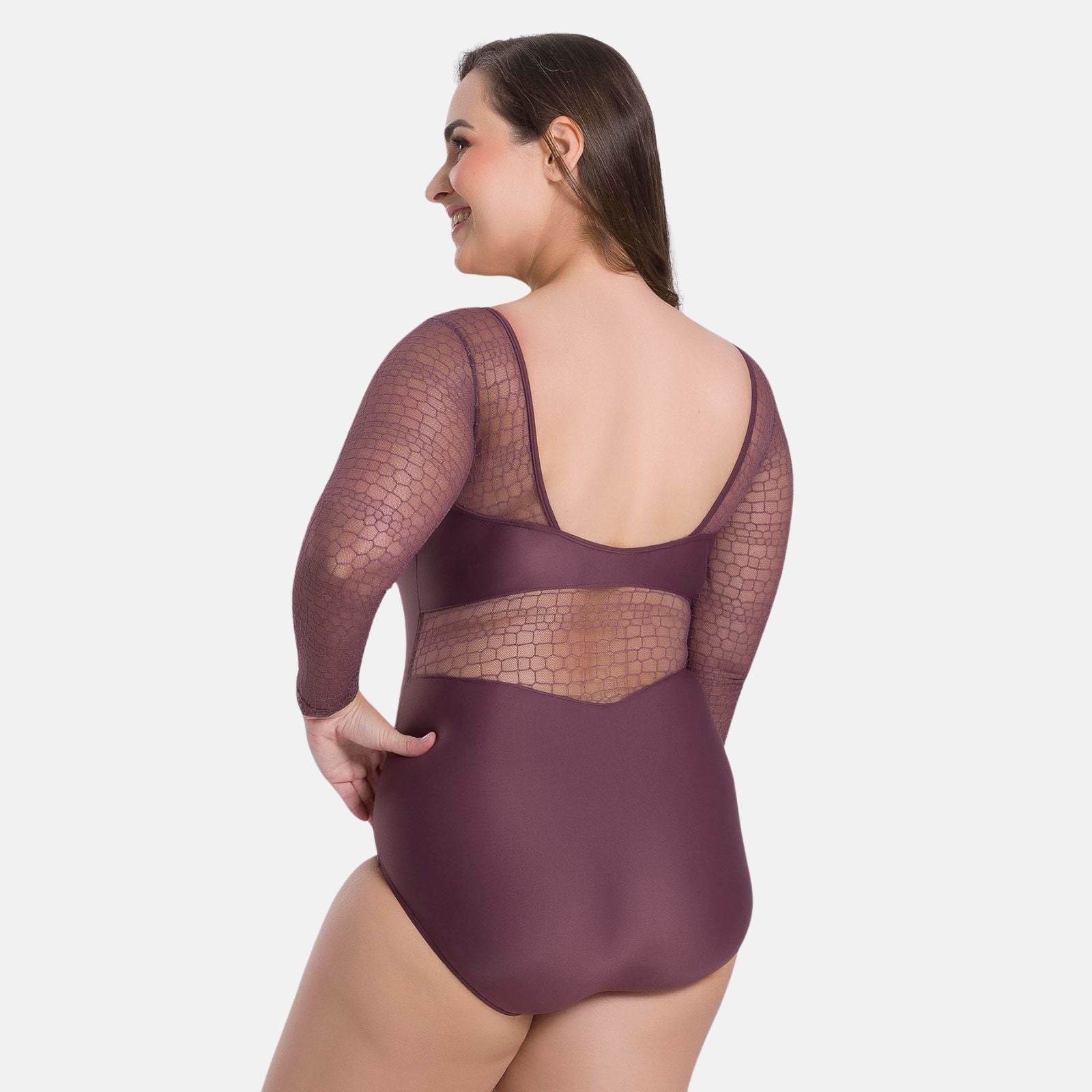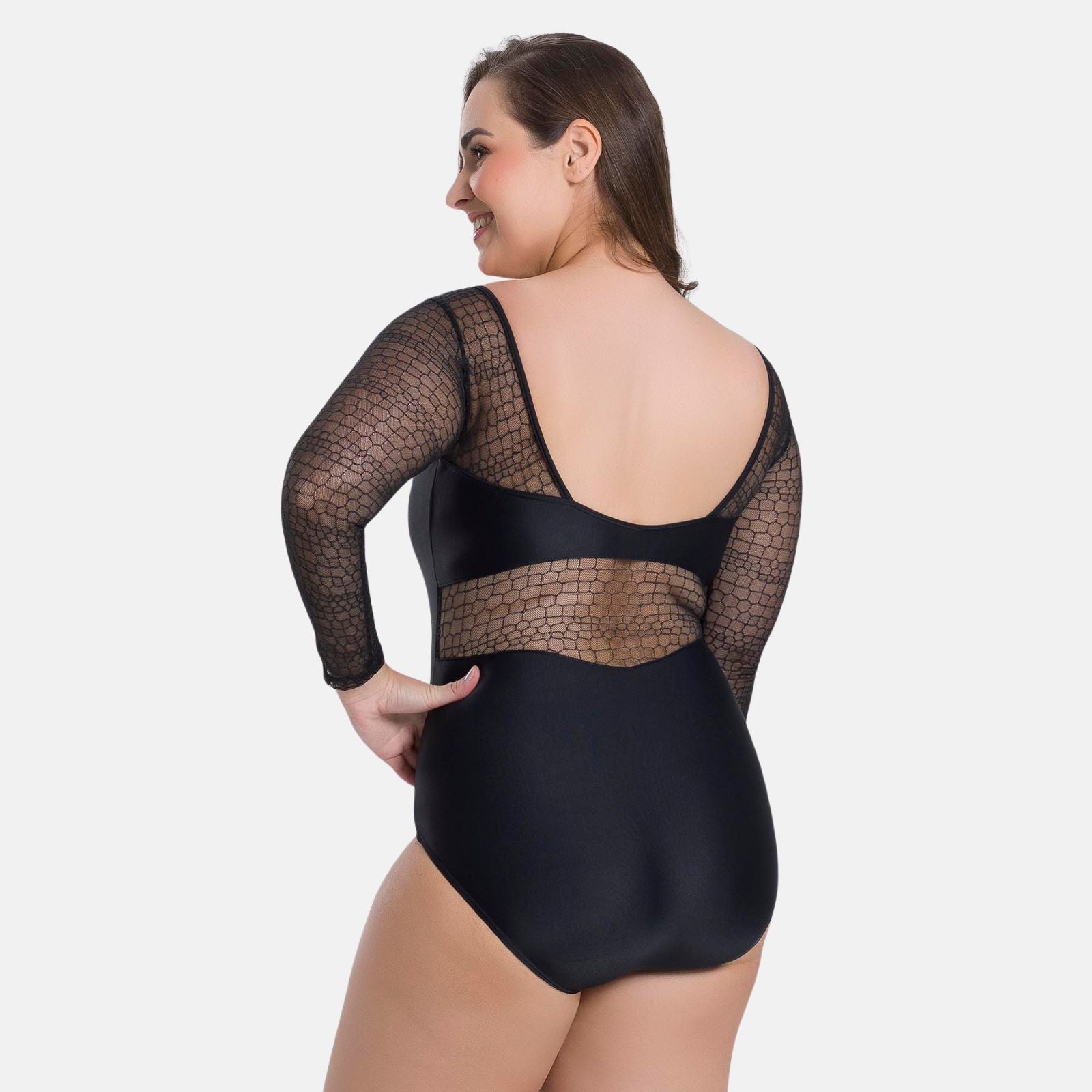 Curvy Long Sleeve Mesh Leotard with Open Back Feature