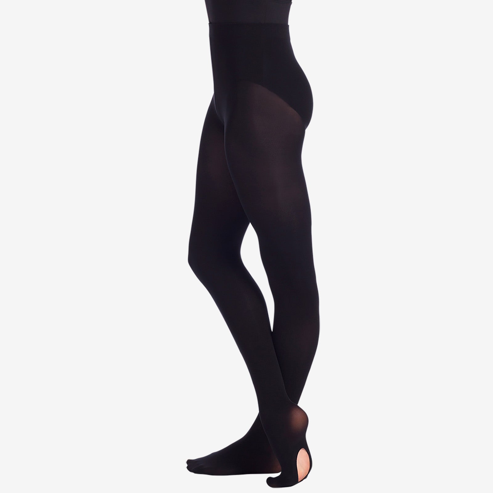 The Ultimate Multi-Tasker: Features a discreet hole under the foot for quick and easy conversion from footed (for class/stage) to footless (for rolling up to paint toes or treat injuries).