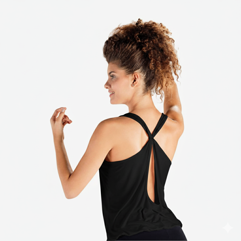 Make a statement in the studio with the Tatiana Top (D200) by Só Dança. This adult dance top expertly blends functional performance with contemporary style, featuring a classic scoop neck front for secure coverage and a bold teardrop cutout on the back. The open-back design not only creates a visually stunning silhouette but also offers essential breathability during intense rehearsals.