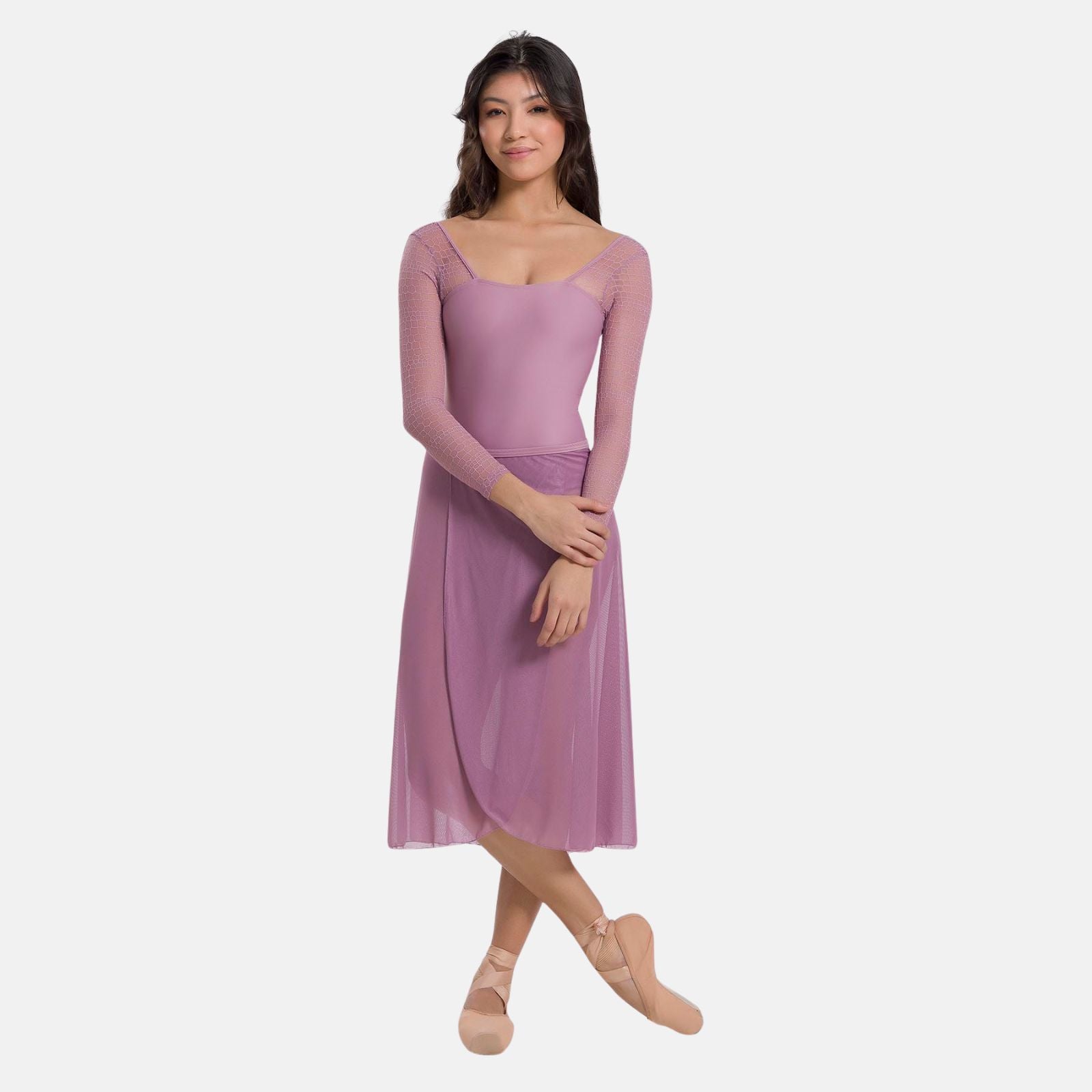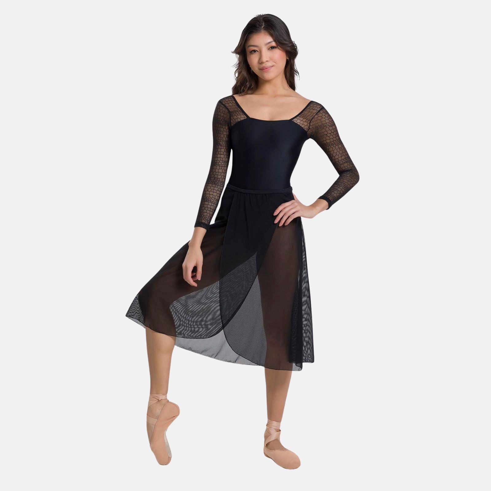 Add sophistication to your dance attire with this classic wrap skirt. Featuring a combination of mesh spandex and microfiber, this versatile piece ties securely and creates a flattering silhouette for every dancer.