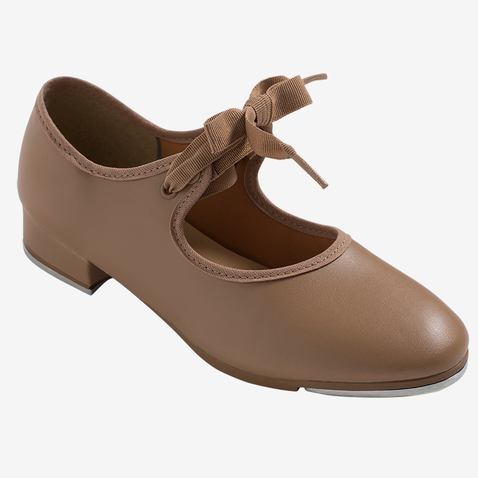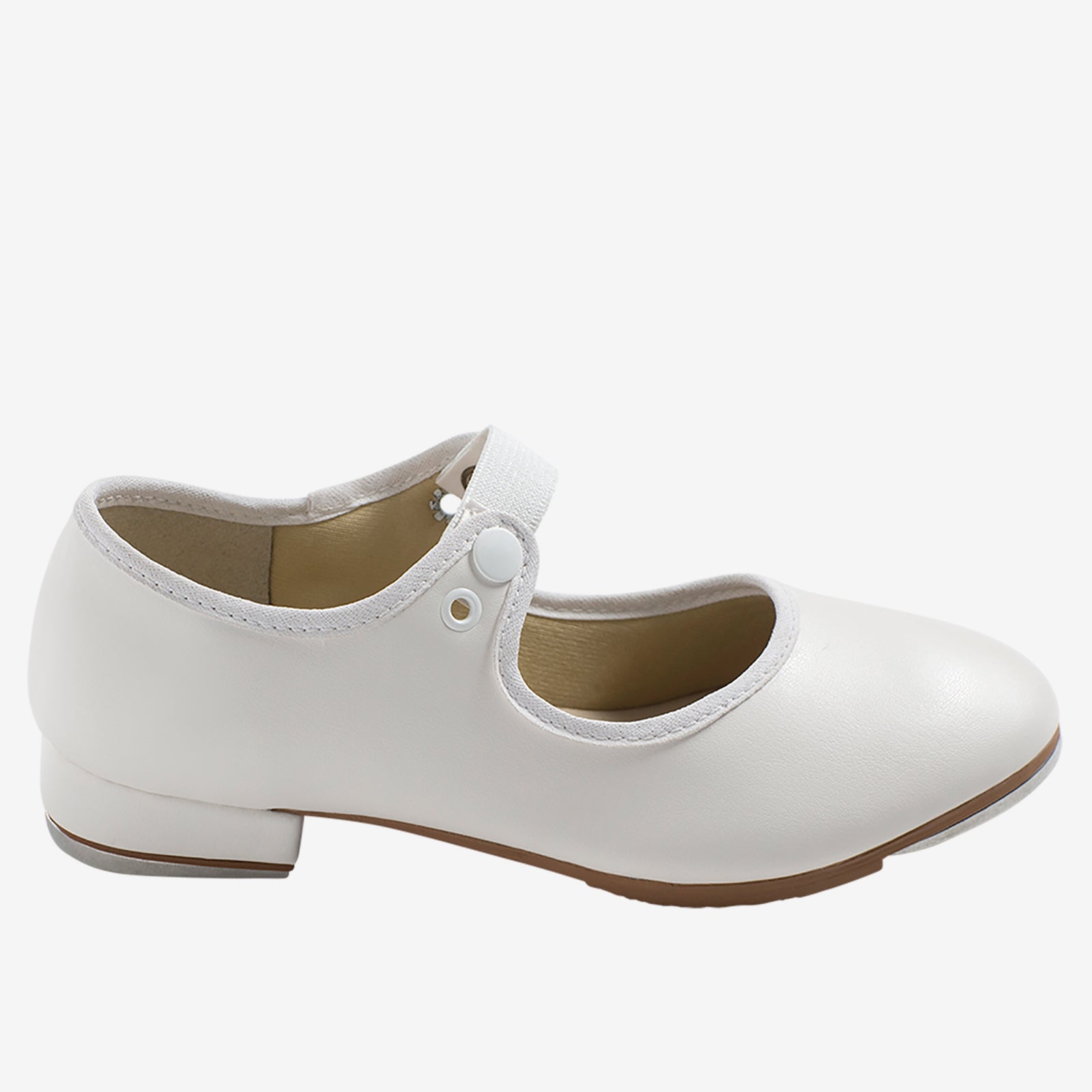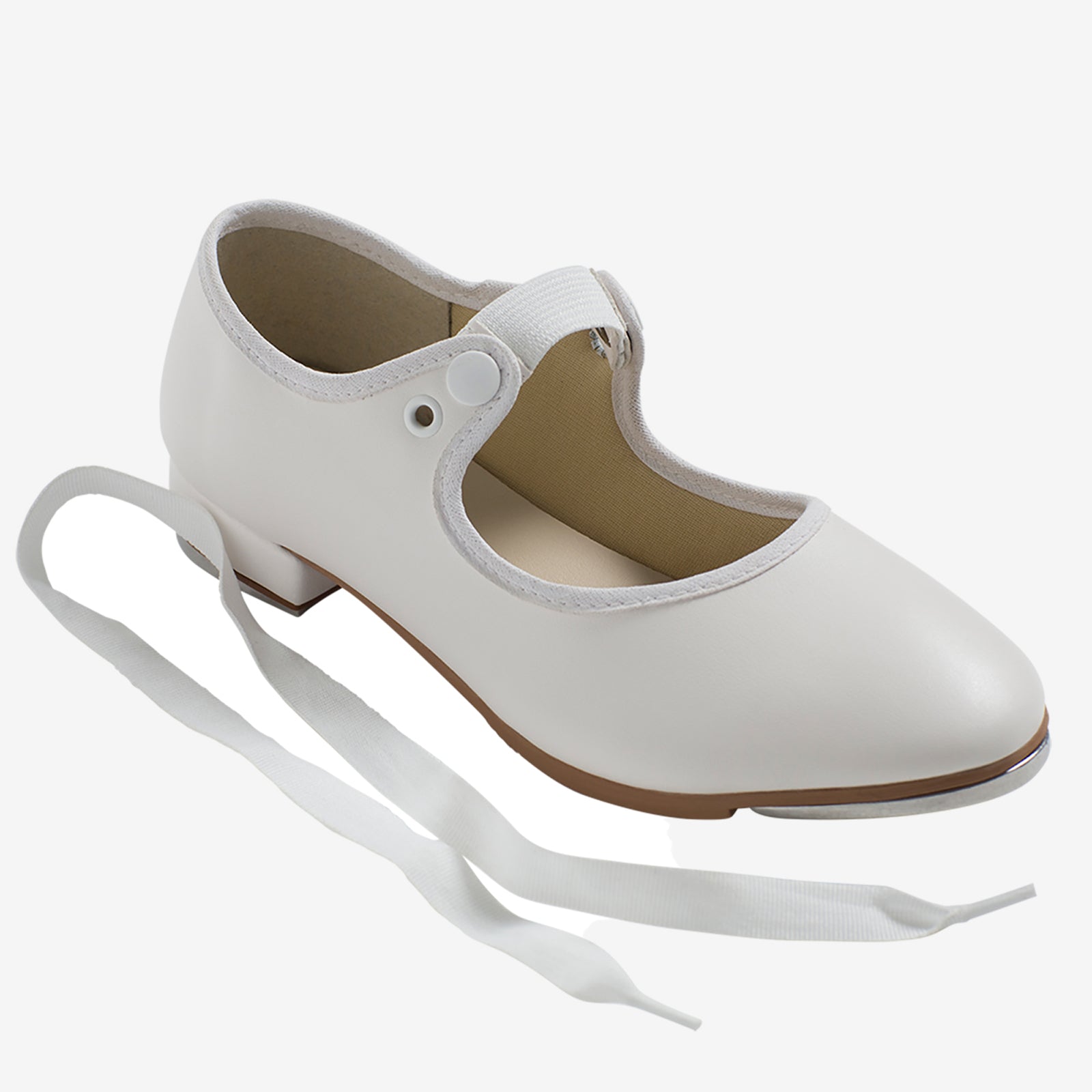 Start their tap journey with a shoe that’s as sweet as their first shuffle. The child beginner tyette Vegan tap shoe combines classic charm with modern comfort, making it the perfect first step into the world of dance. With a soft vegan leather upper, gentle binding around the opening, and a cushioned lining, this shoe is built for happy feet from warm-up to cool-down. The flexible vegan sole makes it easy for little dancers to keep their heels lifted, while the riveted aluminum taps deliver clear, confident sound. Finished with an adorable ribbon look and easy-on elastic snaps, it's as practical as it is picture-perfect—ready for every hop, step, and smile along the way.