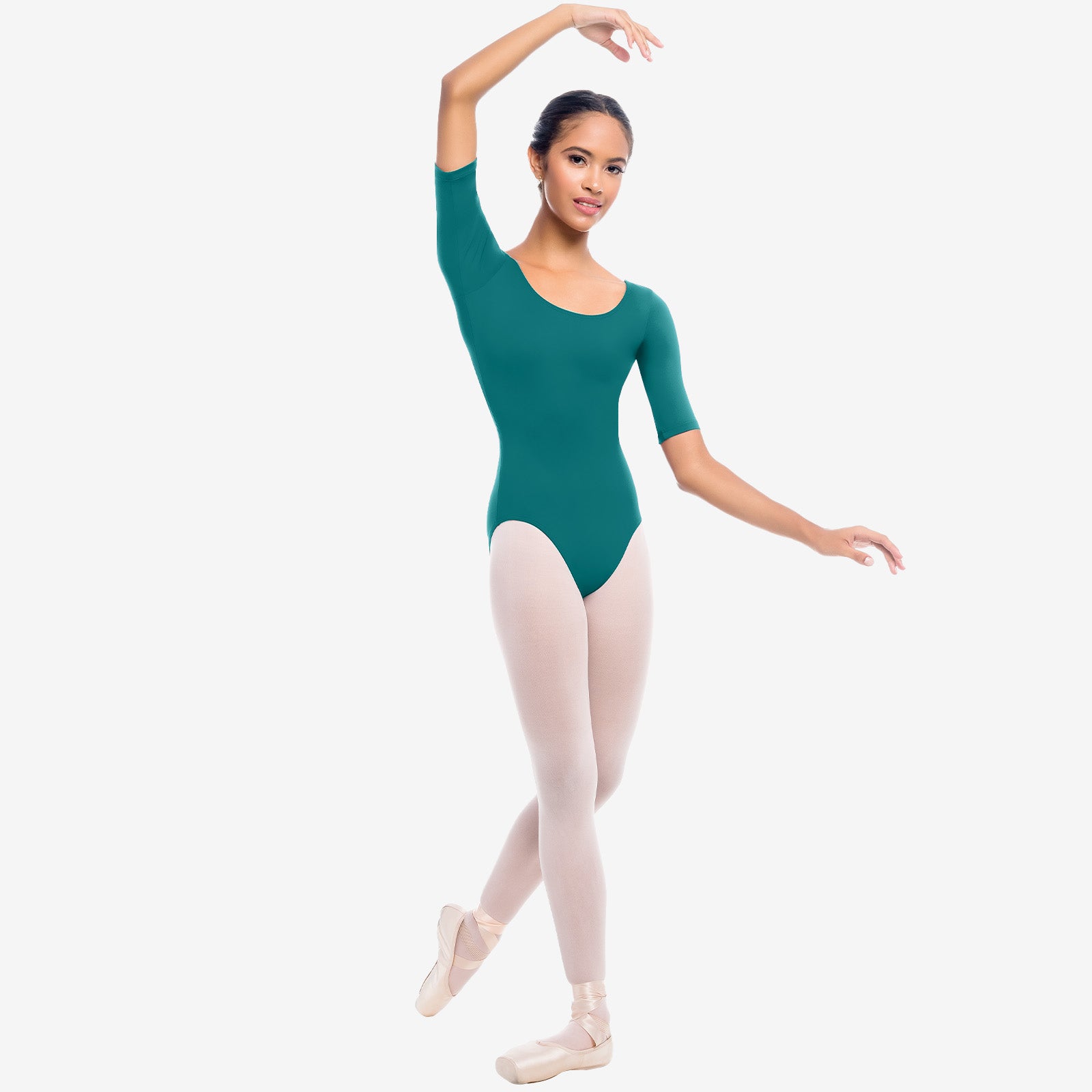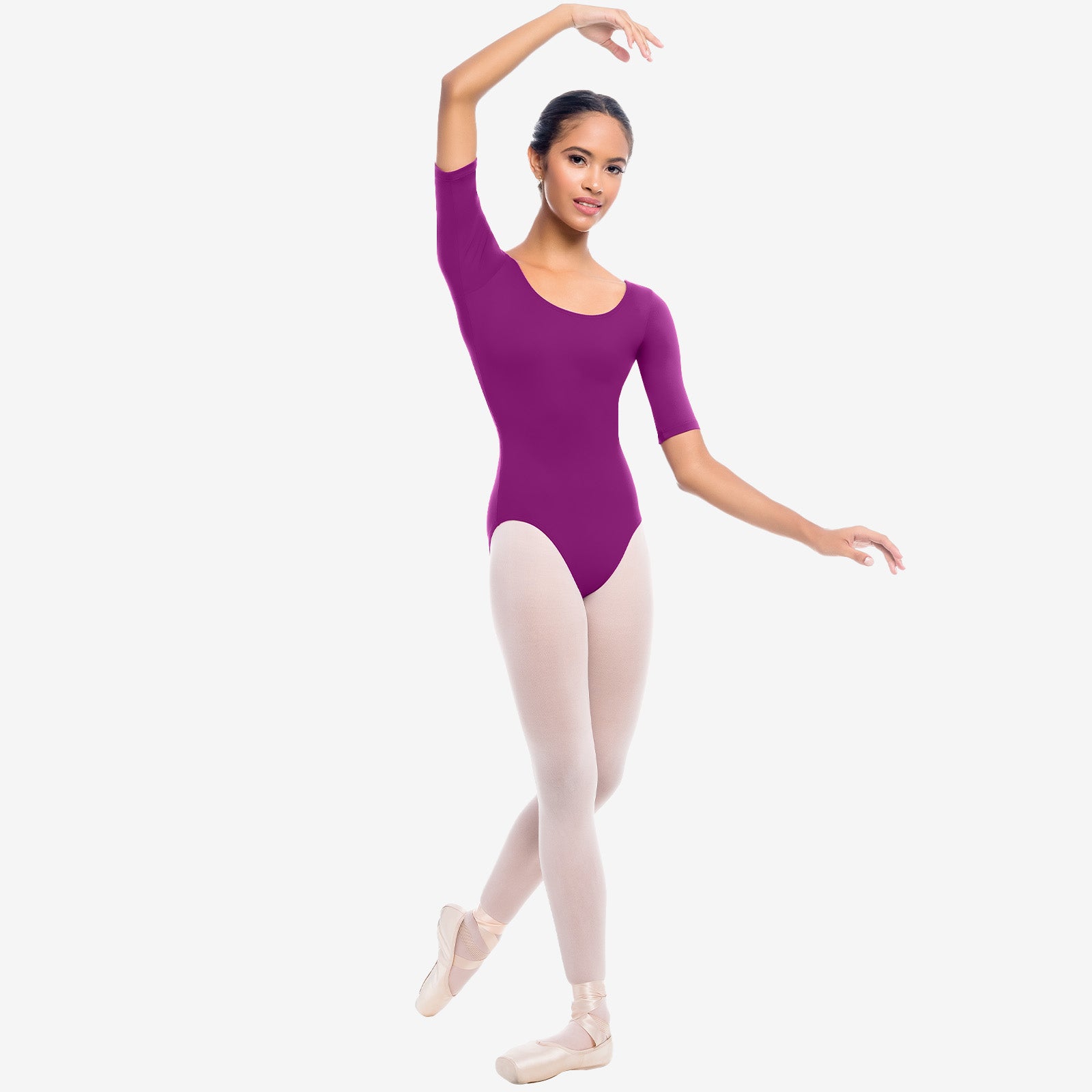 Passez de la danse à la détente sans effort avec ce justaucorps en microfibre à manches mi-longues. La doublure du soutien-gorge se moule parfaitement avec un col rond pour accentuer vos clavicules et favoriser une flexibilité maximale.