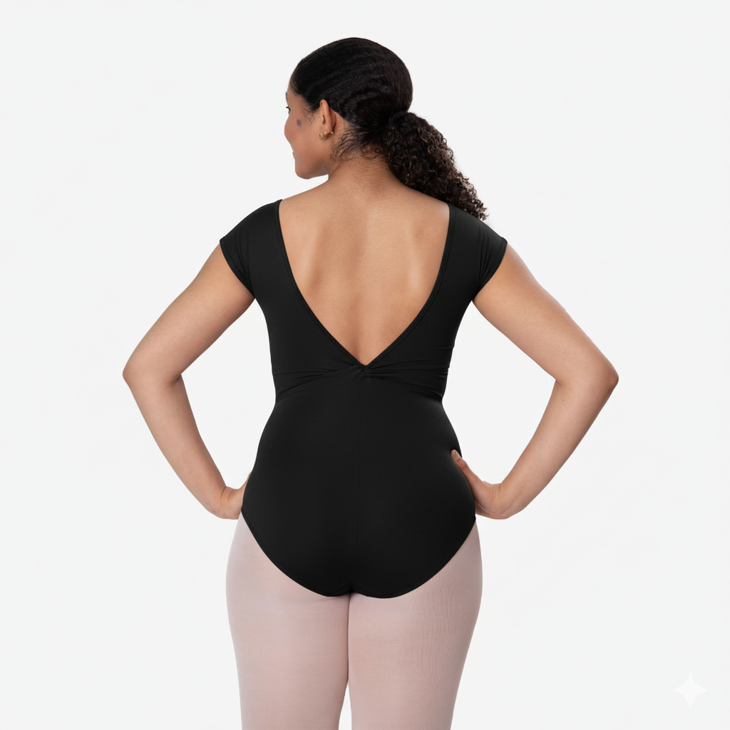 Cap Sleeve Leotard with Deep V-Back and Front/Back Pinch Detail
