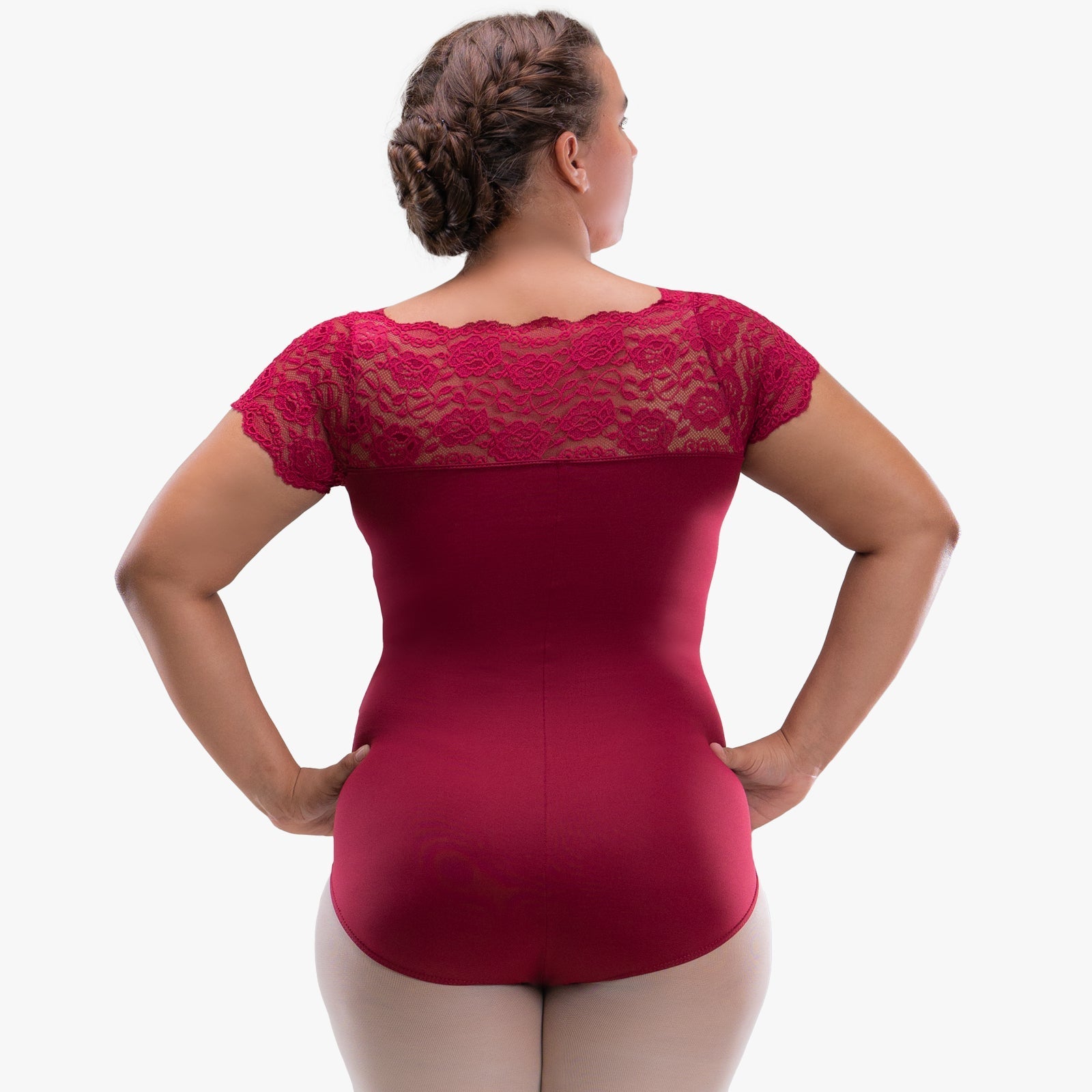 Our Curvy Adult Cap Sleeve Leo with Lace Neckline is designed to provide both style and support for dancers of all sizes. The cap sleeve design adds a touch of elegance and sophistication, while the lace neckline adds a feminine and delicate detail. Made from high-quality material, this leo is both durable and stretchy, allowing for a full range of motion. The shelf lining provides added support and coverage, ensuring a secure and comfortable fit.