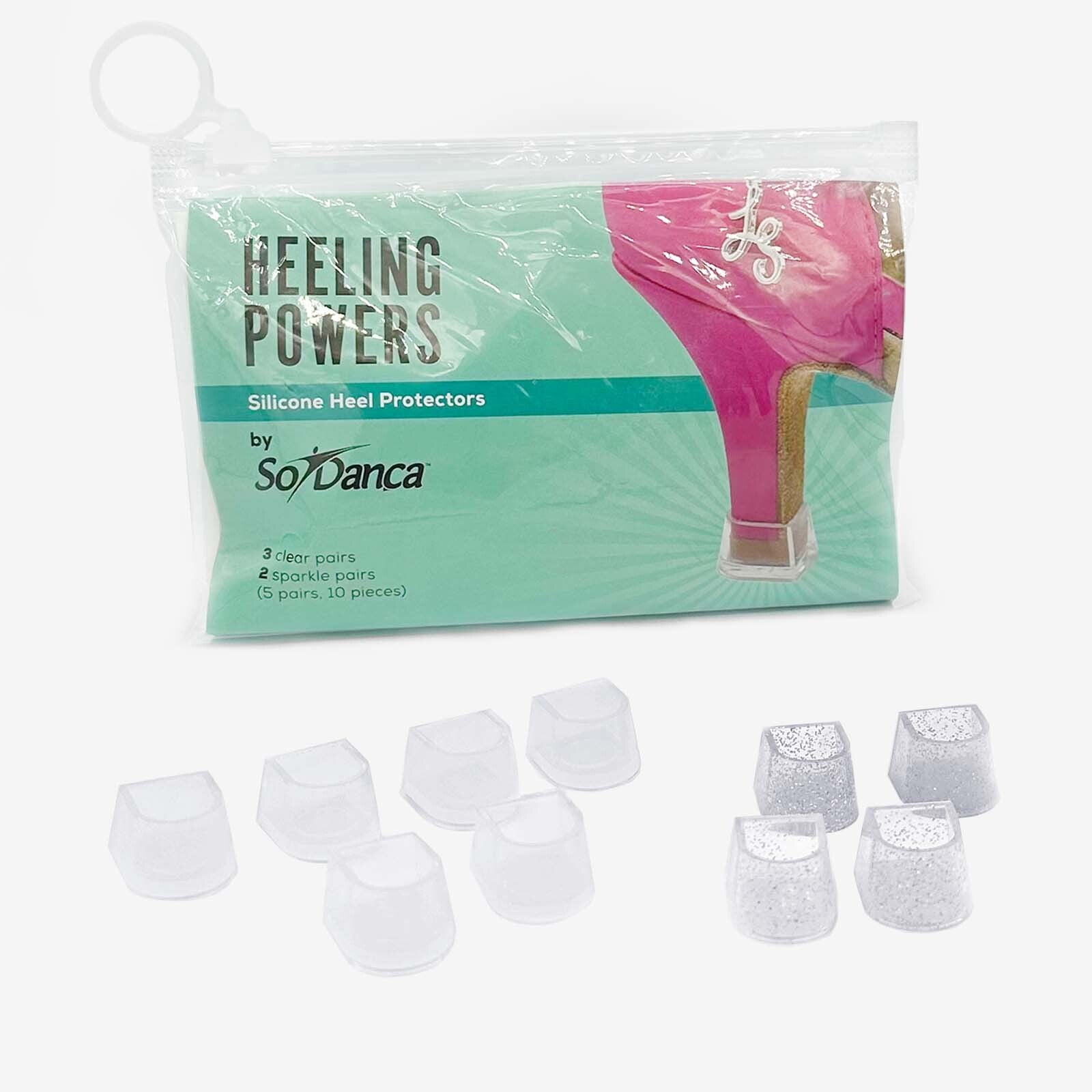 - Heel tips for 5 shoes, 3 clear pairs, 2 sparkle pairs (5 pairs, 10 pieces)