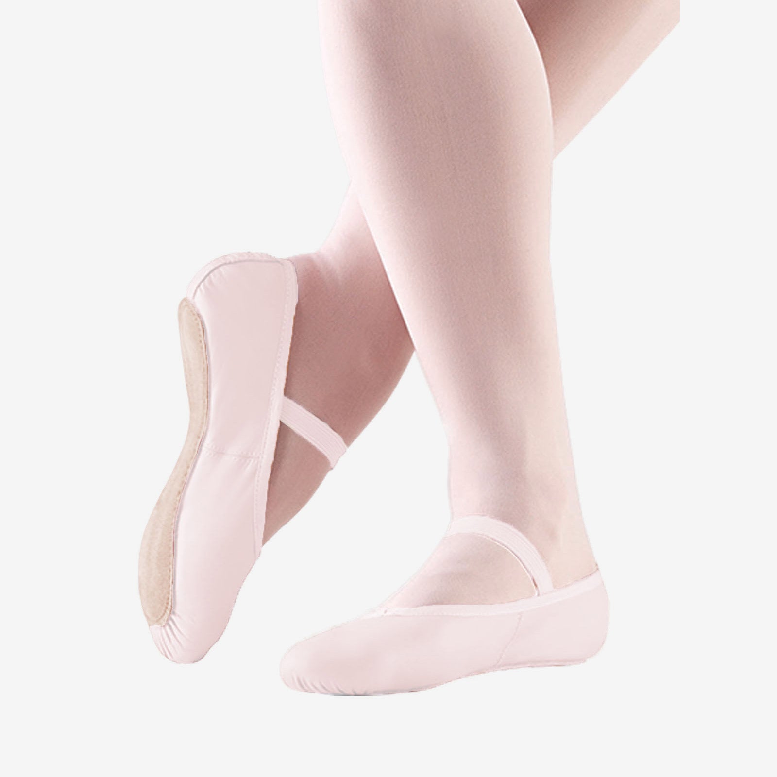 Full sole ballet shoe with soft leather upper and loose cotton lining.