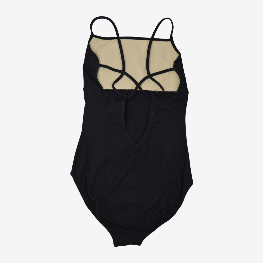 Adult camisole leotard with empire waist, strappy back and shelf lining.