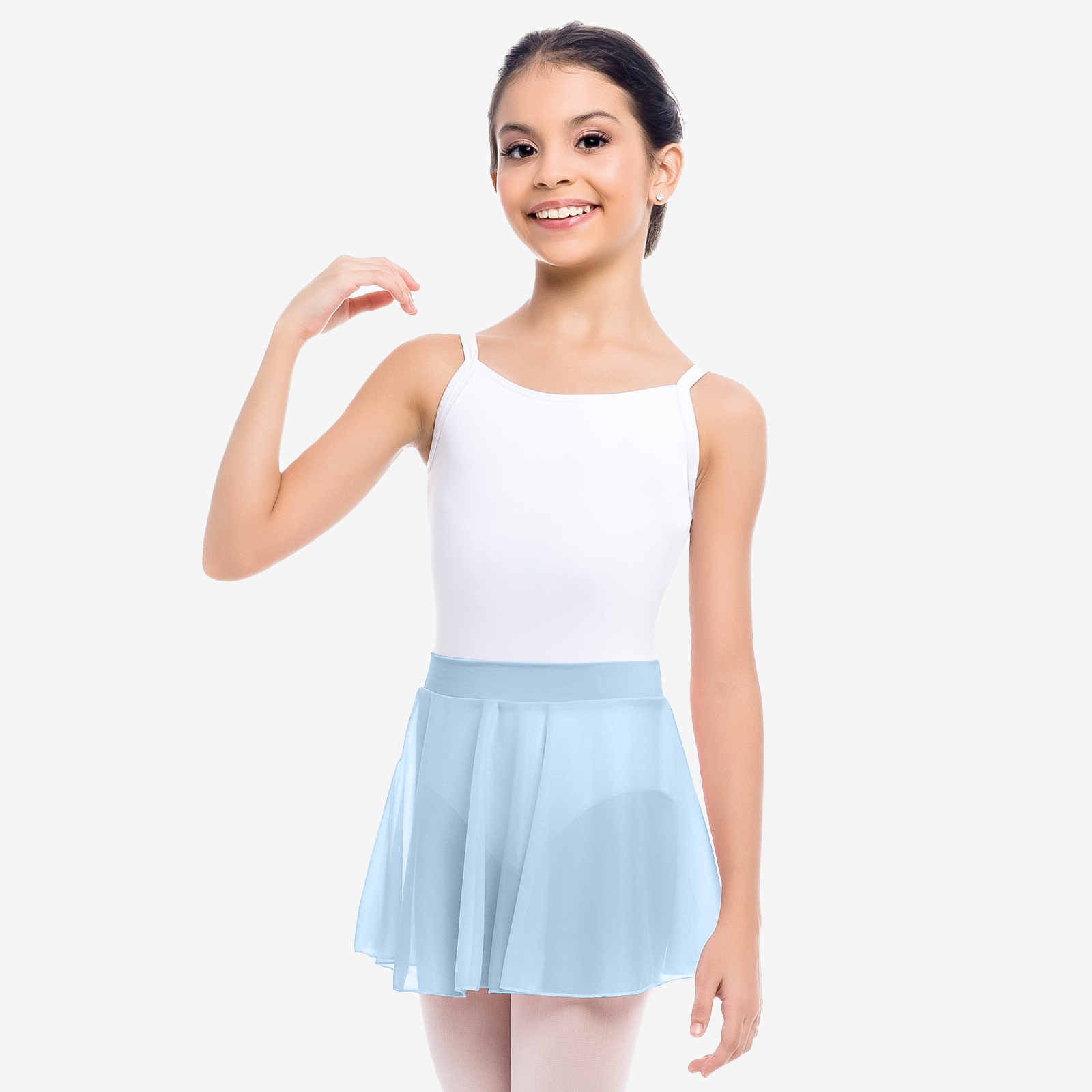 - Child pull-on, sheer circle skirt with cotton Lycra waistband.