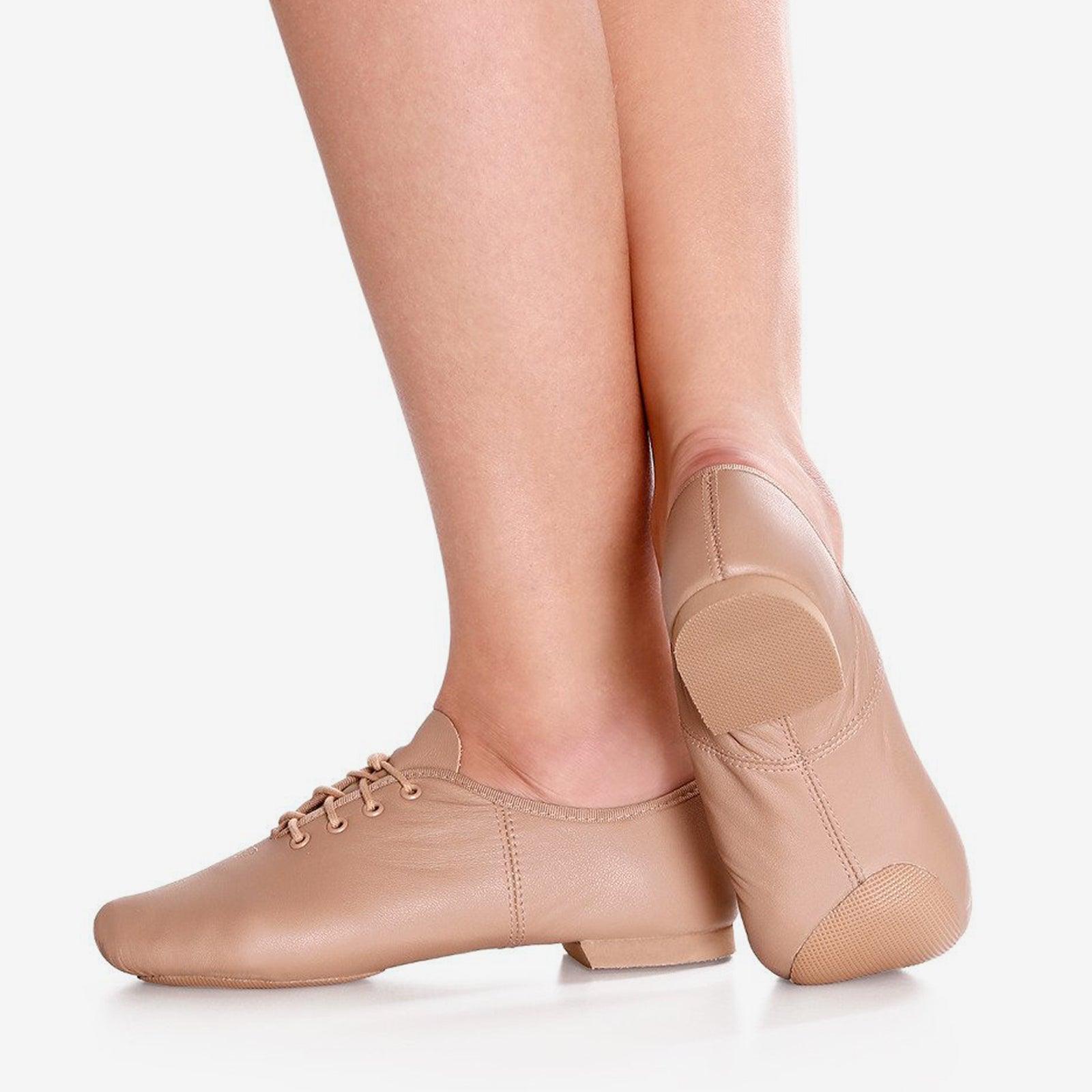 Child jazz shoe split sole lace-up, rubber sole & heel. The lace-up JoJo jazz shoe provides our split sole technology for maximum flexibility and comfort from your heel to your toe.